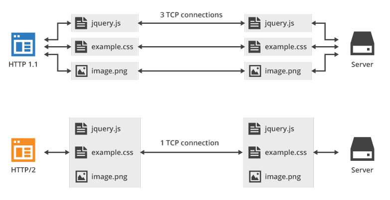 - HTTP2 cerca di minimizzare il numero delle connessioni TCP aperte (per la maggior parte dei casi ne basta una) e di inviare tutti i dati in essa